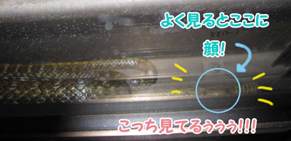 そしたらお蛇様がこちらを振り返って、また目と目が合ってしまった。