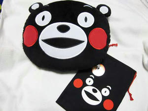 部屋に戻るとこのくまモンクッションがいます。