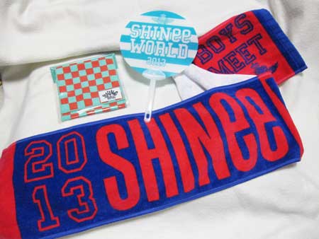 ジョンヒョン色のマフラータオル、うちわ、ポケット付きミニタオル。
