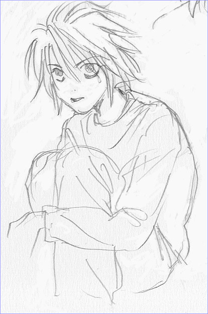 画像は鉛筆ではしり描きしたデスノのLとブリーチのルキアちん。