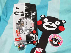 お買いものしたら、くまモンうちわとドーナツ棒をもらいました♪