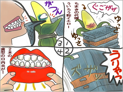 ・・・しっかり前歯2本の傷、いや、口内炎ができてしまいましたぁ!!