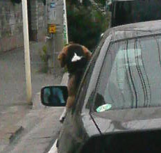 窓から犬がずっと体を乗り出してました。
