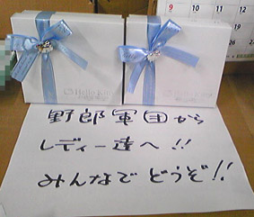 バレンタインデーには、仕事場の男性諸君4人に女子一同でお金を出し合って