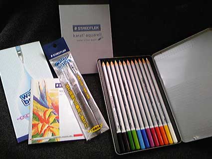 画像はクレジットカードのたまったポイントでゲットしたSTAEDTLERの水彩色鉛筆セットです。